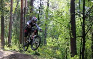 Пеший просмотр трассы прошел в относительно комфортных погодных условиях, хотя и под сгущающимися тучами. После двух дней дождей открытые участки успели немного просохнуть, а лесные, оставаясь довольно влажными, всё-таки внушали уверенность в хорошем сцеплении на этой трассе с диким уклоном, коварными поворотами, торчащими корнями, каменными секциями, длинными мостами и огромными трамплинами.